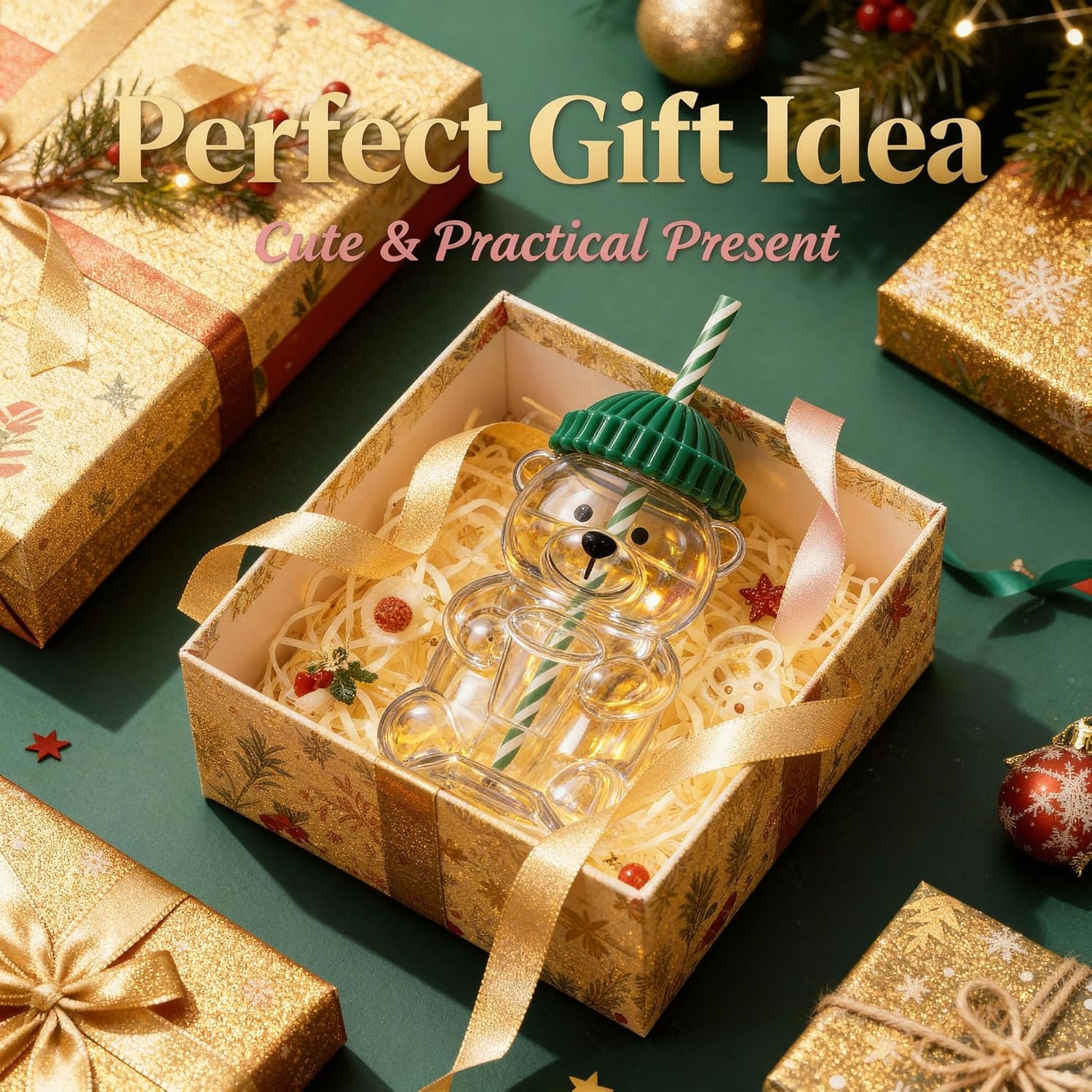 • Capacity: This cute bear-shaped glass cup holds 20oz.