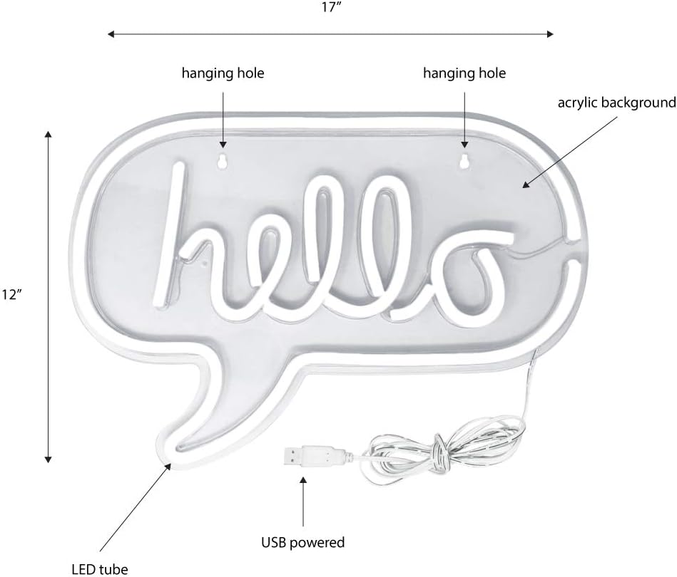 LED Neon ‘White & Pink “hello” Word Bubble’ Wall Sign for Cool Light, Wall Art, Bedroom Decorations, Décor: Powered by USB Wire
